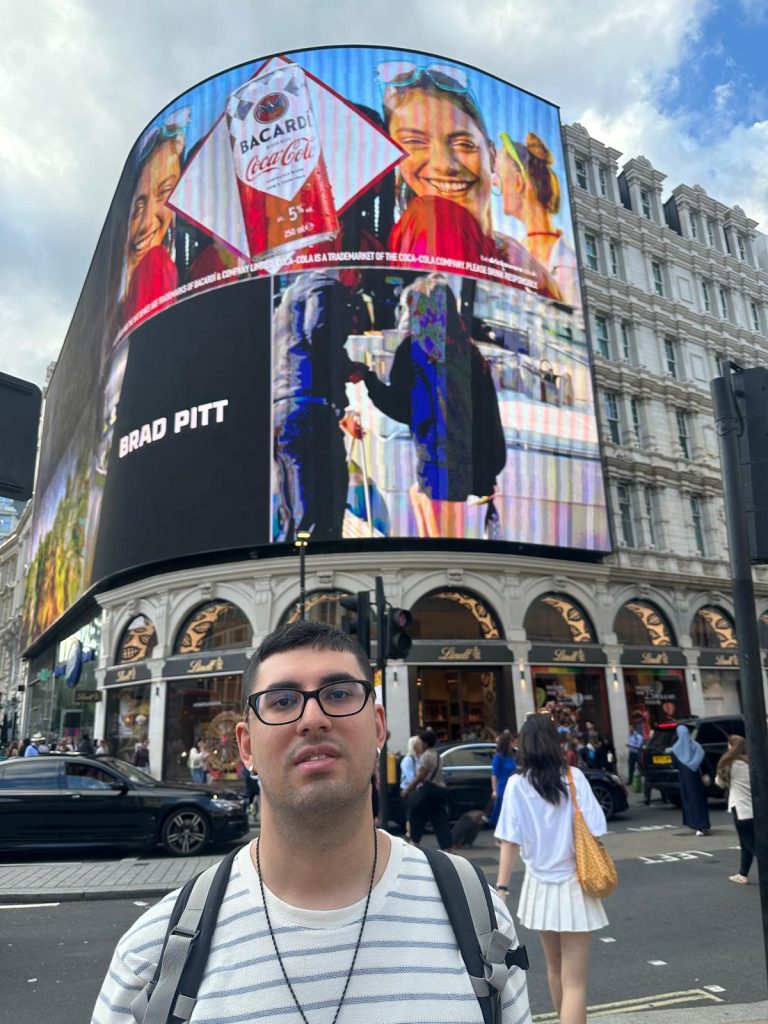 Here is Trafalgar Square and Piccadilly Circus. I am standing near Piccadilly Circus, one of London’s busiest and most iconic locations, known for its massive digital billboards.